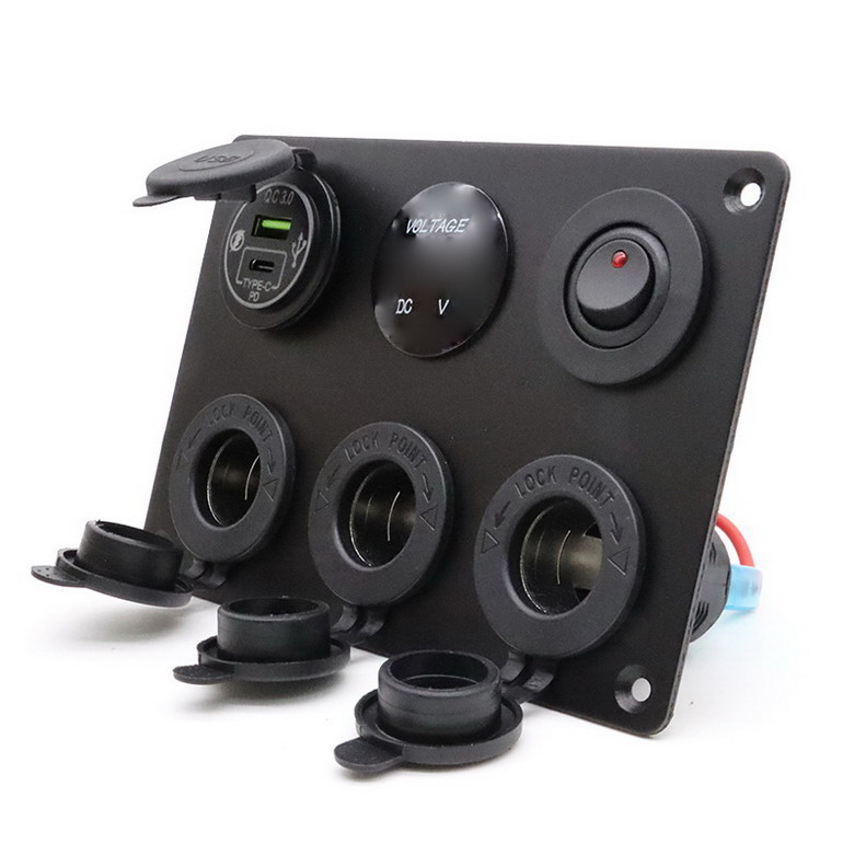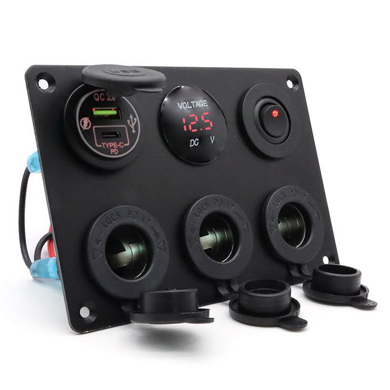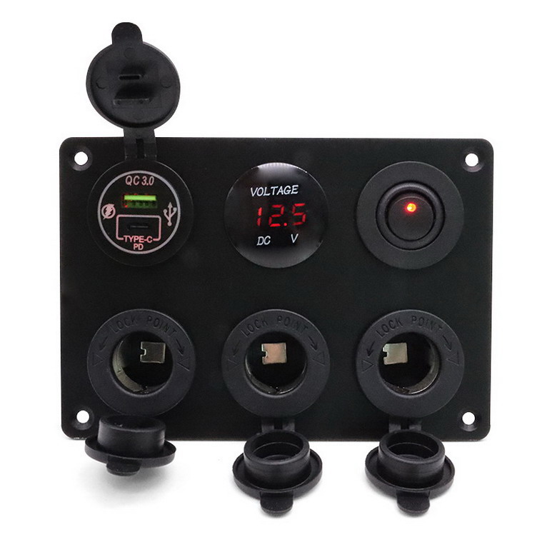 Usage: Control switch for driver's cab of automobiles, RVs, buses, trucks, ships, yachts, etc., multifunctional switch+car charger, voltage digital display. Car charger is suitable for charging functions such as mobile phones, computers, speakers, GPS, etc.